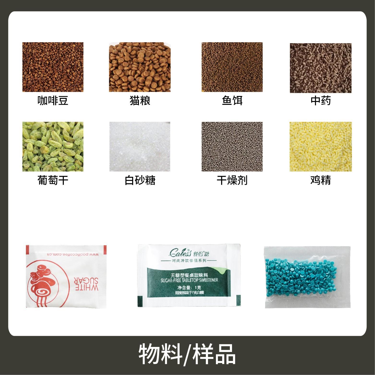 1適用于各類調(diào)味料,沖劑、餌料、香珠等小顆粒狀物品的計量包裝。